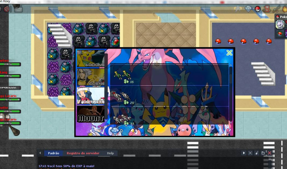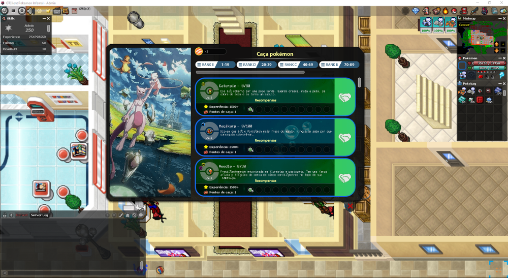 Servidor Pokemonster, era um projeto pessoal meu com alguns amigos, a principio estava a venda por R$2.000,00, porém após algumas vendas, começaram a revender. Irei deixei disponivel o projeto, com suporte pago. discord: icaropimentel o que o servidor tem? Pokebar Pokedex Held system npc dialog cam system criação de personagem e conta no cliente pokemon holder brotherhood npcs com modulo sistema de titulo sistema de market particle aura, wings, shaders, auras, attached effects.. unique item modulos de shop, guild, craft, task, catch guardian (card pxg) stack de itens 10.000 autoloot pesca evolução order otimizado e completo depot customizado filtros em containers movebar reedem codes minimap party zone system (xml) entre outras coisas, o servidor não é livre de bugs. tem muita coisa pra fazer. porém o principal esta encaminhado, sendo uma base recomendada para criação de projetos caso queiram apoiar o post: pix: [email protected] binance id: 304078646 créditos: icaropimentel, vitorbaia, guilherme, helton, daniel, greg(fix em spells), lippe(primeira versao do mapa), theforgottenserver, pokedashpota link server+client: [Hidden Content] github com correçoes: IcaroPimentel654/pokemonsterserver IcaroPimentel654/pokemonsterclient arquivos binarios: [Hidden Content] mapa: [Hidden Content] sql corrigido erros: [Hidden Content] VirusTotal - File - 21abaf923277496e3975cb5b0b34052c9ea8c9228e8b885c551993fa8035fac7 prints abaixo:44 pontos