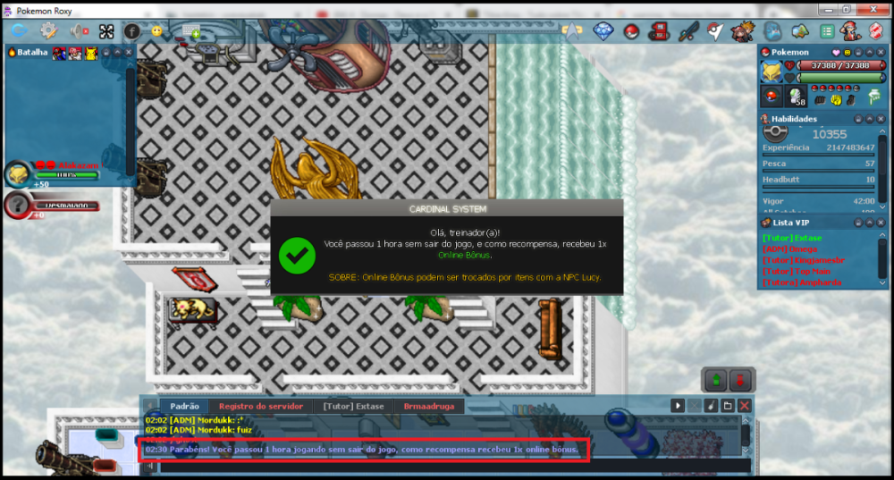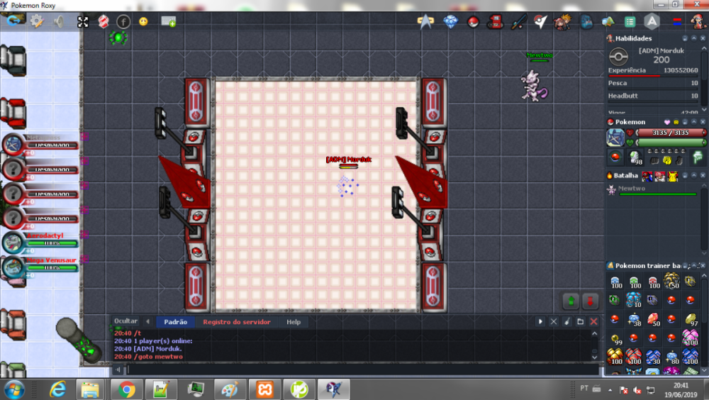 Primeiramente gostaria de esclarecer algumas polemicas relacionas a base na época (2019) em que estava online comigo. O "SERVIDOR" (nome PokemonRoxy com grupo no facebook de 600 pessoas e pagina) foi vendido na época por 500 reais, sendo que a mesma estava com uma média de 50 players diarios com donaters ativos, chegou a atingir o limite de 140 players simultanêos. Quando vendi a base avisei ao comprador que a venda do servidor não limitaria a minha venda da BASE, tenho prints que comprovam. Nessa vendi uma copia da base por 100 reais na época e acabaram vazando (copias da base que estão em outros forums) Pessoas mal intensionadas colocaram um monte de trap na source pra disponibilizar a base e ganhar vendendo a source original. O pokemon roxy pra quem não sabe foi feito a partir da base do PokemonChampions, foi corrigido todos bugs criticos da base, source e mapa refeitos do 0. A source que acompanha é a original Vamos um ajudar o outro pra comunidade crescer cada dia mais e aumentar o nivel sempre 😉 O intuito do servidor era realmente ser algo diferente do estilo PxG da vida, algo um pouco mas casual mas ainda sim um servidor serio. porém tenho certeza que a base tem capacidade pra um projeto serio com outra proprosta de jogo. E tem gente que tem projeto excelente e promissor com a base como por exemplo pokegenerations que será lançada em breve CRÉDITOS: Eu (MORDUK) que fiz praticamente tudo no servidor, desde mapa que refiz do 0, até a maioria dos scripts em lua e investi alto em alguns sistemas Kevin L Ajudou bastante na parte de sprites e alguns modulos Carlos Guiminha Sempre ajudou o servidor in-game e com sprites Se tiver mais alguem manda msg pois não me lembro PRINTS ANTIGAS DE QUANDO O SERVIDOR ESTAVA ONLINE (MESMOS ARQUIVOS DAQUI): CONTEÚDO: -Site (100% funcional, com shop entregando in-game automaticamente) -Source do OTCLIENT -Source do OTCLIENT com criptografia -Source do Servidor -Codeblocks usado para compilar DOWNLOAD: [Hidden Content]? SENHA DOS ARQUIVOS: 12roxy12 SCAN: [Hidden Content] DATABASE: Usar a mysteryous.sql que está na base do servidor Sou mapper, todas as ilhas do mapa e maioria das quests foram feitas por mim. Faço trampo de copia também, a hunt de altaria foi feita por mim 100% igual da PXG, até mesmo os detalhes! faço por encomenda também! Também faço scripts em lua Posso ajudar com suporte a alguns problemas Ótima base para retirada de sistemas em lua, c++ e modulos do client ESPERO AJUDAR A COMUNIDADE E ESPERO QUE CRESÇAMOS CADA DIA MAIS UM AJUDANDO AO OUTRO.19 pontos