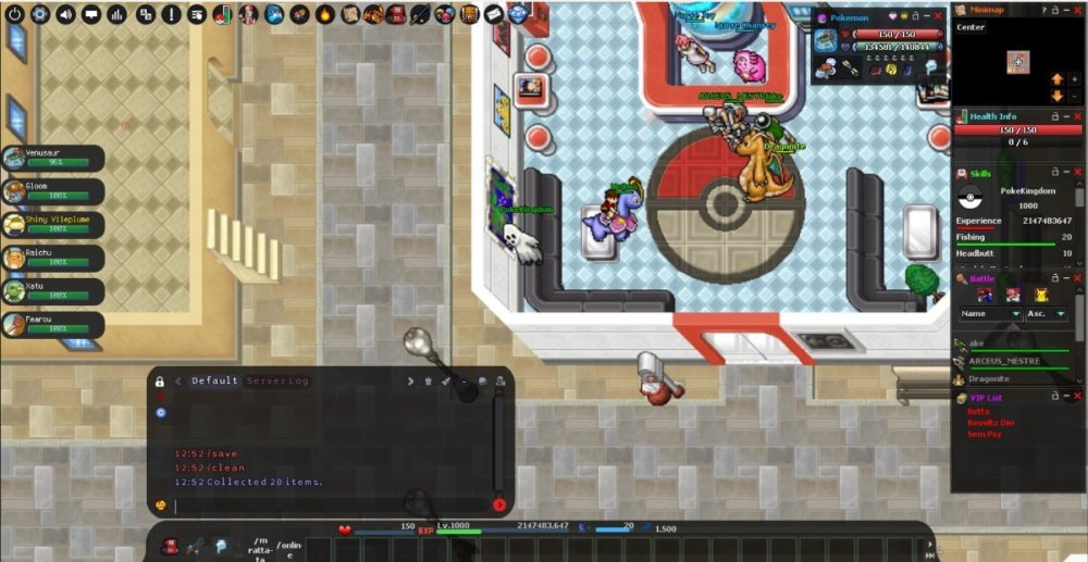 Servidor Pokemonster, era um projeto pessoal meu com alguns amigos, a principio estava a venda por R$2.000,00, porém após algumas vendas, começaram a revender. Irei deixei disponivel o projeto, com suporte pago. discord: icaropimentel o que o servidor tem? Pokebar Pokedex Held system npc dialog cam system criação de personagem e conta no cliente pokemon holder brotherhood npcs com modulo sistema de titulo sistema de market particle aura, wings, shaders, auras, attached effects.. unique item modulos de shop, guild, craft, task, catch guardian (card pxg) stack de itens 10.000 autoloot pesca evolução order otimizado e completo depot customizado filtros em containers movebar reedem codes minimap party zone system (xml) entre outras coisas, o servidor não é livre de bugs. tem muita coisa pra fazer. porém o principal esta encaminhado, sendo uma base recomendada para criação de projetos caso queiram apoiar o post: pix: [email protected] binance id: 304078646 créditos: icaropimentel, vitorbaia, guilherme, helton, daniel, greg(fix em spells), lippe(primeira versao do mapa), theforgottenserver, pokedashpota link server+client: [Hidden Content] github com correçoes: IcaroPimentel654/pokemonsterserver IcaroPimentel654/pokemonsterclient arquivos binarios: [Hidden Content] mapa: [Hidden Content] sql corrigido erros: [Hidden Content] VirusTotal - File - 21abaf923277496e3975cb5b0b34052c9ea8c9228e8b885c551993fa8035fac7 prints abaixo:560 pontos