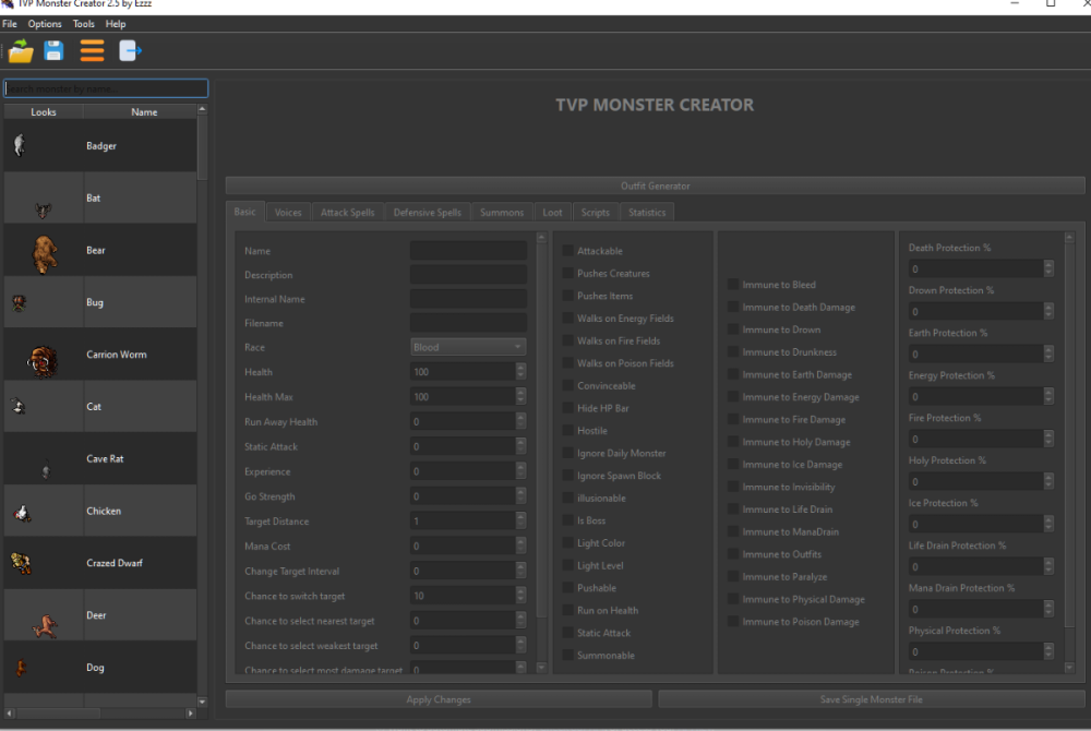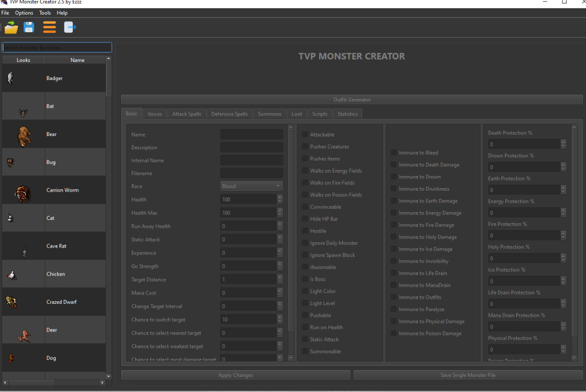 this too would have been prevented if otacademy would not ban me for no real reason especially with unwanted biased attacks even from him on my person. while I never done him wrong this might be the twisting turn. TL;dr ezz have made nostalrius and after a leak created TVP a bugged version of nostalrius iwth a promise of once off payment which quickly turned into full bug base and money extraction tool that gods have not dreamed off while ezz made loads of money from community he left a lot of people who paid him thousands of dollars stranded and without help to further promote his projects I decided to release this lovely demo that he sells for 200$ so all he has left now is the sources. TVP Monster Editor.zip usage edit config/config.json { "data": "D:\\ACOLINNNNNNNNNNNNNNNNNNNNN\\forgottenserver-1.4.2\\independence\\clientbuild\\data\\things\\1098\\tibia.dat", << DAT FILE "sprite": "D:\\ACOLINNNNNNNNNNNNNNNNNNNNN\\forgottserver-1.4.2\\independence\\clientbuild\\data\\things\\1098\\tibia.spr", <<SPR FILE "server-data-directory": "D:\\ACOLINNNNNNNNNNNNNNNNNNNNN\\forgottserver-1.4.2\\independence\\data", << DATA FOLDER OTS "otb-items": true, << IF USING NEW TVP ENGINE WITH ITEMS.xml set false "auto-load": true, "extended-sprites": true, << ENSURE ALL TAGS ARE SAME AS IN OBJECT BUILDER (65k spr limit) "frame-groups": true, << ENSURE ALL TAGS ARE SAME AS IN OBJECT BUILDER (9+ tibia frame groups) "frame-durations": true, << ENSURE ALL TAGS ARE SAME AS IN OBJECT BUILDER (advanced animation s "transparent-sprites": false, << ENSURE ALL TAGS ARE SAME AS IN OBJECT BUILDER (transparent sprites) "game": { "effects": {