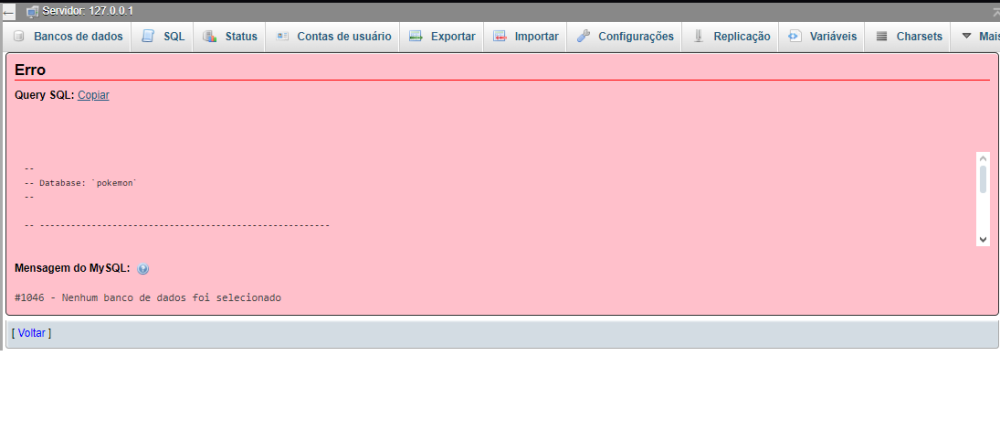 Ao colocar o arquivo .sql no phpmyadmin está dando o devido erro:
