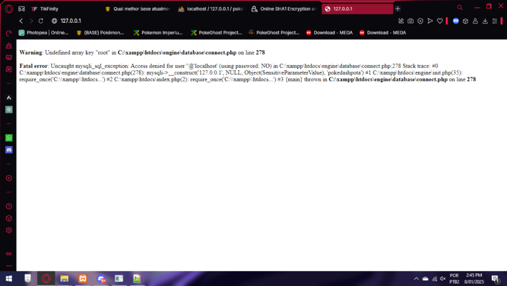 ---- Database: `pokemon`---- ------------------------------------------------------------ Table structure for table `accounts`--CREATE TABLE IF NOT EXISTS `accounts` (`id` int(11) NOT NULL, `name` varchar(32) NOT NULL DEFAULT '', `password` varchar(255) NOT NULL, `premdays` int(11) NOT NULL DEFAULT '0', `lastday` int(10) unsigned NOT NULL DEFAULT '0', `email` varchar(255) NOT NULL DEFAULT '', `key` varchar(128) NOT NULL DEFAULT '', `blocked` tinyint(1) NOT NULL DEFAULT '0' COMMENT 'internal usage', `warnings` int(11) NOT NULL DEFAULT '0', `group_id` int(11) NOT NULL DEFAULT '1', `viptime` int(11) NOT NULL DEFAULT '0', `page_access` int(11) DEFAULT NULL, `page_lastday` int(11) DEFAULT NULL, `email_new` varchar(255) DEFAULT NULL, `email_new_time` int(15) DEFAULT NULL, `rlname` varchar(255) DEFAULT NULL, `location` varchar(255) DEFAULT NULL, `created` int(16) DEFAULT NULL, `email_code` varchar(255) DEFAULT NULL, `next_email` int(11) DEFAULT NULL, `premium_points` int(11) DEFAULT NULL, `nickname` char(48) DEFAULT NULL, `avatar` char(48) DEFAULT NULL, `about_me` text, `create_ip` int(11) NOT NULL, `create_date` int(11) NOT NULL, `last_post` int(11) NOT NULL, `flag` int(11) NOT NULL, `vip_time` int(15) NOT NULL DEFAULT '0', `guild_points` int(15) NOT NULL DEFAULT '0', `vote` int(15) NOT NULL DEFAULT '0', `p_points` int(11) NOT NULL DEFAULT '0') ENGINE=InnoDB AUTO_INCREMENT=4900 DEFAULT CHARSET=latin1;