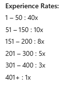 Monster Bonus: Experience scales with creature level (0.17x multiplier per level).