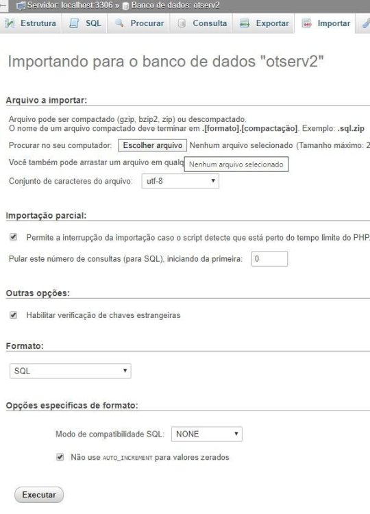 Agora clique em importar, selecione a database e clique em executar.