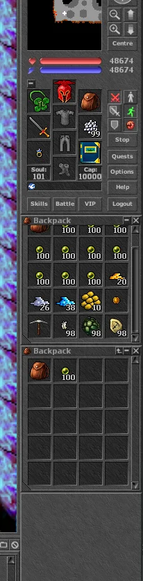 TA TRAVANDO O SERVIDOR QUANDO COLETA DINHEIRO !autoloot money e mata CRIATURAS eu achei o bug quando player tem muita backpack sub backpack trava servidor na hora de mata criatura ME AJUDA CONCERTAR <?xml version="1.0" encoding="ISO-8859-1"?> <mod name="Perfect Auto Loot" version="2.0" author="Vodkart" contact="none.com" enabled="yes"> <config name="Loot_func"><![CDATA[ info = { distro = 1, -- 1 = TFS // 2 = talk modificada directory = "data/logs/autoloot", Warn_Bp_Slots = 5, -- quando tiver 5 ou menos slots na BP vai avisar o jogador Talkaction_delay = 5, -- em segundos // delay para remover e adicionar item BlockMonsters = {}, BlockItemsList = {2123,2515}, Money_ids = {2148, 2152, 2160}, -- id das moedas do ot Max_Slots = {free = 3, premium = 5}, Storages = {988801, 988802, 988803, 988804, 988805, 988806, 988807} } Color_Loot = { [0] = {MESSAGE_EVENT_ORANGE, "Orange"}, [1] = {MESSAGE_STATUS_CONSOLE_BLUE, "Blue"}, [2] = {MESSAGE_INFO_DESCR, "Green"}, [3] = {MESSAGE_STATUS_CONSOLE_RED, "Red"}, [4] = {MESSAGE_STATUS_SMALL, "White"} } function getPlayerColorLootMessage(cid) return getPlayerStorageValue(cid, info.Storages[5]) <= 0 and 0 or getPlayerStorageValue(cid, info.Storages[5]) end function isInTable(cid, item) for _,i in pairs(getItensFromAutoloot(cid)) do if tonumber(i) == tonumber(item) then return true end end return false end function doremoveItemFromAutoloot(cid, itemid) local file, fileContent = io.open(info.directory.."/"..getCreatureName(cid)..".txt", 'r'),{} for line in file:lines() do if line ~= "" and tonumber(line) ~= tonumber(itemid) then fileContent[#fileContent + 1] = line end end io.close(file) file = io.open(info.directory.."/"..getCreatureName(cid)..".txt", 'w') for index, value in ipairs(fileContent) do file:write(value..'\n') end io.close(file) end function doAddItemFromAutoloot(cid, itemid) if not existsAutoloot(cid) then doCreateLootUserName(cid, itemid) return true end local file = io.open(info.directory.."/"..getCreatureName(cid)..".txt", "a+") file:write('\n'..itemid) file:close() end function existsAutoloot(cid) local f = io.open(info.directory.."/"..getCreatureName(cid)..".txt", "rb") if f then f:close() end return f ~= nil end function doCreateLootUserName(cid, itemid) newFile = io.open(info.directory.."/"..getCreatureName(cid)..".txt", "w+" ) newFile:write(itemid) newFile:close() end function getItensFromAutoloot(cid) if not existsAutoloot(cid) then return {} end lines = {} for line in io.lines(info.directory.."/"..getCreatureName(cid)..".txt") do if line ~= "" then lines[#lines + 1] = tonumber(line) end end return lines end function doCleanAutoloot(cid) return os.remove(info.directory.."/"..getCreatureName(cid)..".txt") end function ShowItemsTabble(cid) local auto_list = getItensFromAutoloot(cid) local n,str = 0,"[+] Auto Loot Commands [+]\n\n!autoloot item name --> To add ou Remove item from list.\n!autoloot money --> To collect gold automatically.\n!autoloot clear --> To clear the list.\n!autoloot on/off --> To enable or disable the collecting of items in the system.\n!autoloot message --> To enable or disable message from Collect items.\n!autoloot color --> To change Color message in Auto Loot Collect.\n!autoloot warn --> To enable or disable message warning of "..info.Warn_Bp_Slots.." or less slots in the backpack.\n!autoloot deposit --> To enable or disable automatic money deposit at the bank.\n\n[+] Auto Loot Info [+]\n\nSystem: "..(getPlayerStorageValue(cid, info.Storages[1]) <= 0 and "Activated" or "Disabled")..".\nGold Collecting: "..(getPlayerStorageValue(cid, info.Storages[2]) > 0 and "Activated" or "Disabled")..".\nMessage: "..(getPlayerStorageValue(cid, info.Storages[6]) <= 0 and "Activated" or "Disabled")..".\nColor Message: "..Color_Loot[getPlayerColorLootMessage(cid)][2]..".\nWarn Backpack: "..(getPlayerStorageValue(cid, info.Storages[3]) <= 0 and "Activated" or "Disabled")..".\nAutomatic Gold Deposit: "..(getPlayerStorageValue(cid, info.Storages[4]) > 0 and "Activated" or "Disabled")..".\nTotal Bank Balance: ["..getPlayerBalance(cid).."]\nMaximum Slots: ["..#auto_list.."/"..(isPremium(cid) and info.Max_Slots.premium or info.Max_Slots.free).."]\n\n[+] Auto Loot Slots [+]\n\n" if #auto_list > 0 then for i = 1, #auto_list do n = n + 1 str = str.."Slot "..n.." - "..getItemNameById(auto_list[i]).."\n" end end return doPlayerPopupFYI(cid, str) end function getContainerItems(container, array, haveCap) array = array or {} haveCap = haveCap or false if not isContainer(container.uid) or getContainerSize(container.uid) == 0 then array[#array +1] = container else local size = getContainerSize(container.uid) haveCap = (getContainerCap(container.uid) -size) > 0 for slot = 0, (size -1) do local item = getContainerItem(container.uid, slot) if item.itemid > 1 then getContainerItems(item, array, haveCap) end end end return #array >= 1 and array, haveCap end function getContainerItemsById(container, itemid) local founds = {} local items = not container.uid and container or getContainerItems(container) for index, item in pairs(items) do if item.itemid == itemid then founds[#founds +1] = item end end return #founds >= 1 and founds end function AutomaticDeposit(cid, item, n) if isInArray(info.Money_ids, item) and getPlayerStorageValue(cid, info.Storages[4]) > 0 then local deposit = item == tonumber(2160) and (n*10000) or tonumber(item) == 2152 and (n*100) or (n) doPlayerDepositMoney(cid, deposit) end return true end function getAllContainerFree(cid) -- by vodka local containers,soma = {},0 for i = CONST_SLOT_FIRST, CONST_SLOT_LAST do local sitem = getPlayerSlotItem(cid, i) if sitem.uid > 0 then if isContainer(sitem.uid) then table.insert(containers, sitem.uid) soma = soma + getContainerSlotsFree(sitem.uid) end end end while #containers > 0 do for k = (getContainerSize(containers[1]) - 1), 0, -1 do local tmp = getContainerItem(containers[1], k) if isContainer(tmp.uid) then table.insert(containers, tmp.uid) soma = soma + getContainerSlotsFree(tmp.uid) end end t